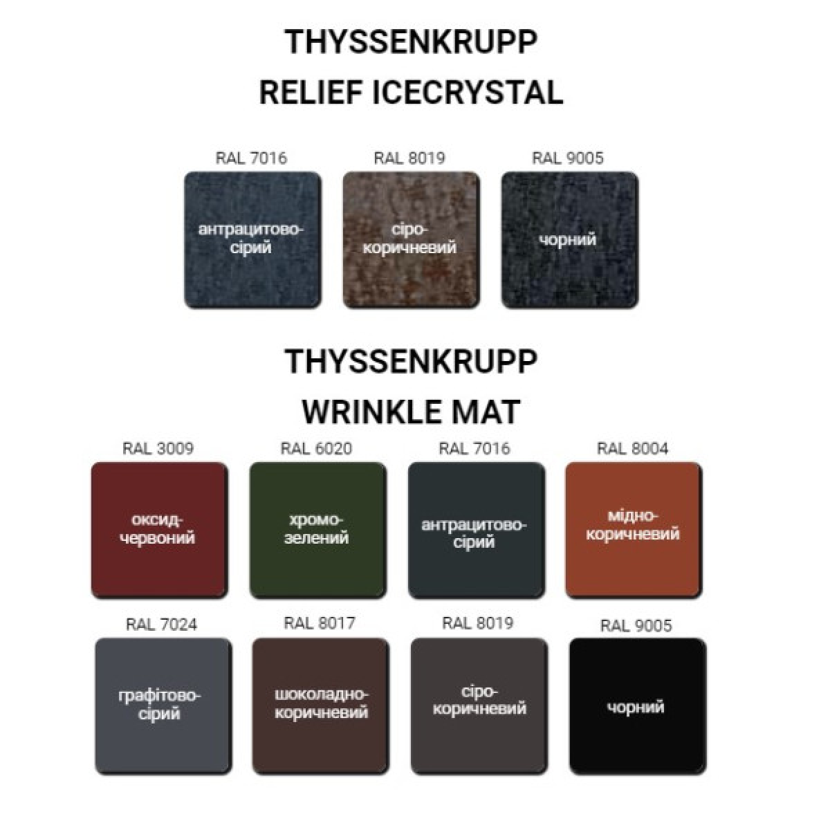 Товщина металу (залежить від виробника): 0,4-0,6 мм.