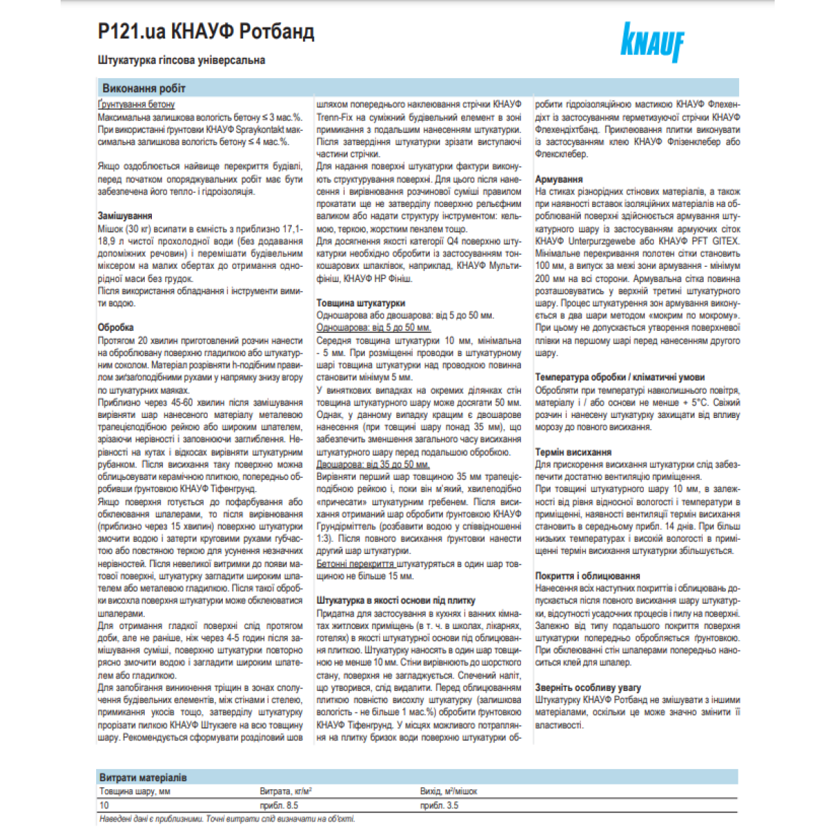 Штукатурка гіпсова KNAUF ROTBAND (30кг)