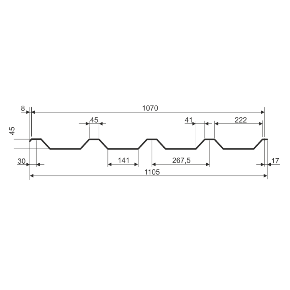 Профнастил Т-45 - висотою 45 мм. Характеризуються високими несучими здібностями, високою якістю металу і довговічністю. Висока несуча здатність досягається за рахунок різних висот профілів, а також застосування конструкційної сталі. Саме тому несучі профнастили широко використовуються в якості покрівлі та фасадів.