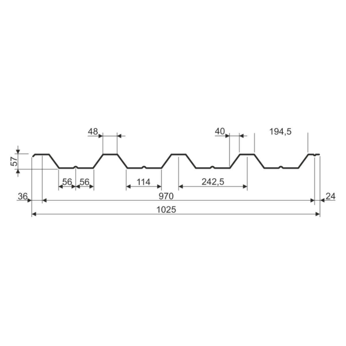 Профнастил Т-57 – характеризується максимальною висотою хвилі серед стінових та покрівельних профнастилів. Переважно цей вид металопрофілю використовується в якості покрівельного матеріалу для дахів з мінімальним кутом нахилу і зашивання фасадів господарських і промислових будівель. Профнастил, характеризуються високими несучими здібностями, якістю металу та довговічністю. Висока несуча здатність досягається за рахунок різних висот профілів, а також застосування конструкційної сталі. Саме тому несучий профнастил широко використовуються в якості покрівлі та фасадів.