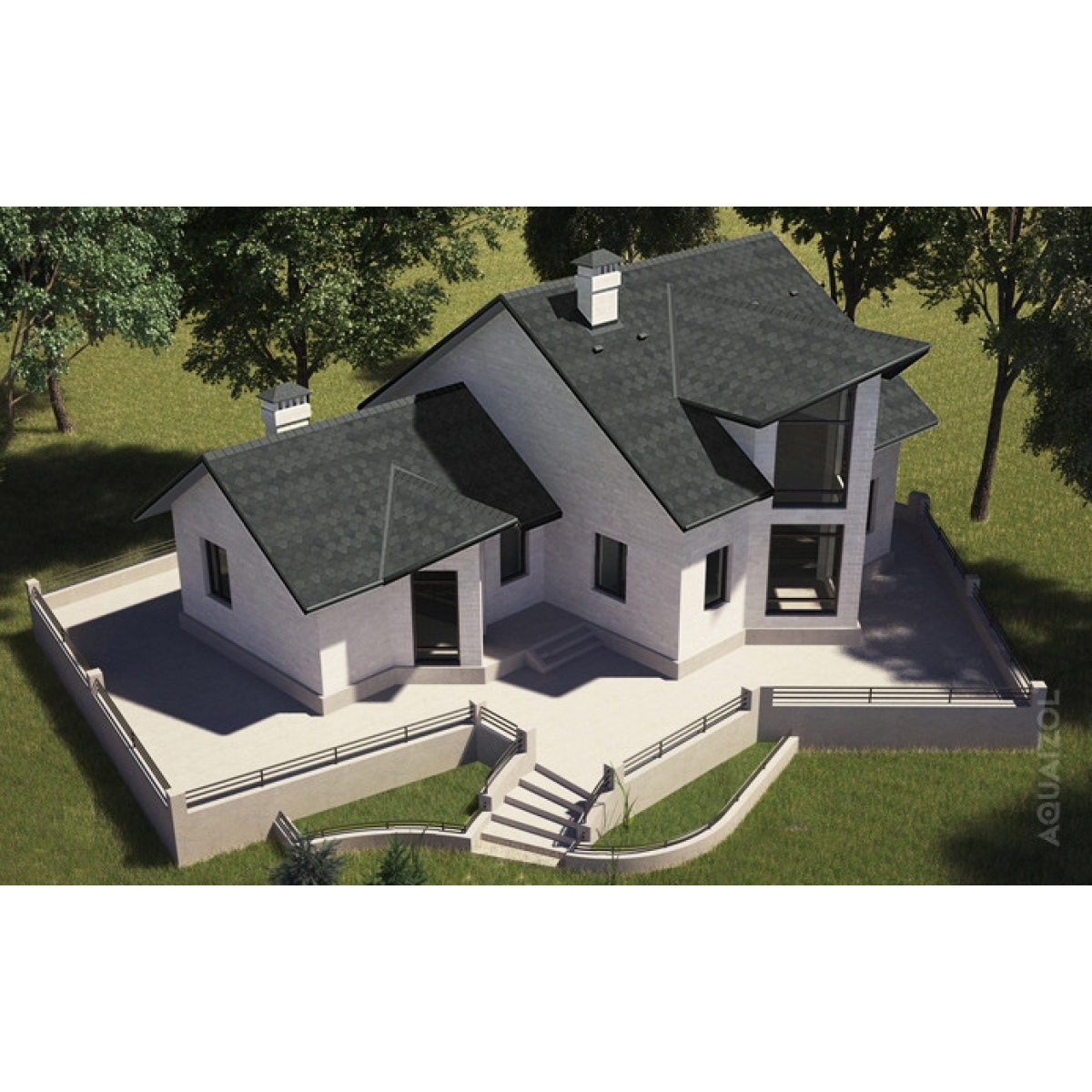 Бітумна черепиця Мозаїка бренду Aquaizol – це гнучкі та м“які плитки у формі витягнутого прямокутника з трьома виступами вздовж нижньої довгої сторони. Виступи ці розташовані симетрично та мають форму рівнобічної трапеції. Розміри однієї плитки серії «Мозаїка» – 1000х320 мм.