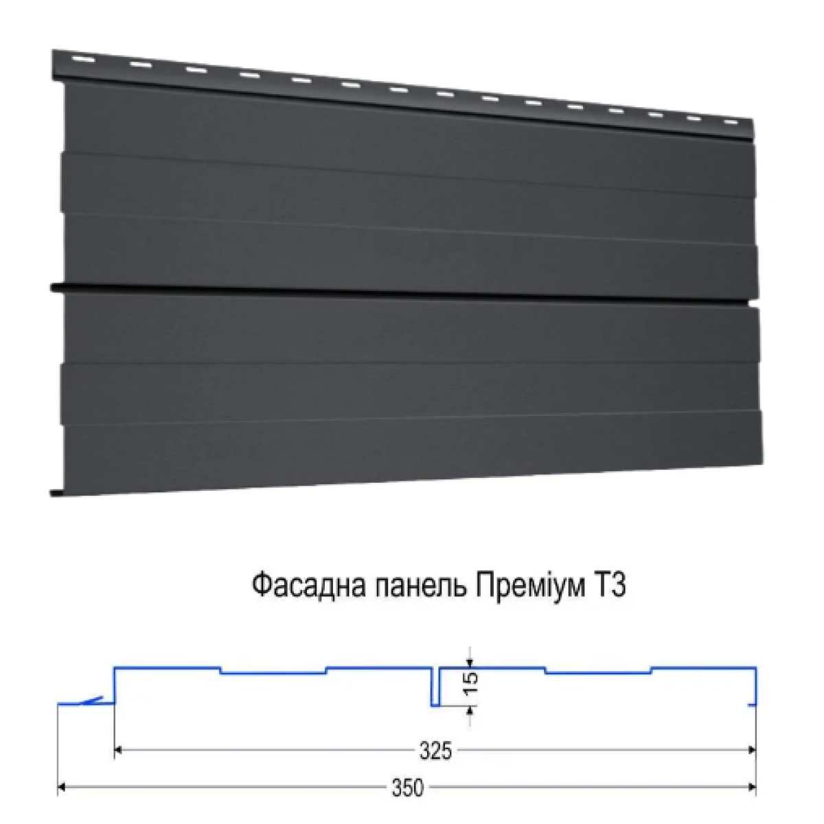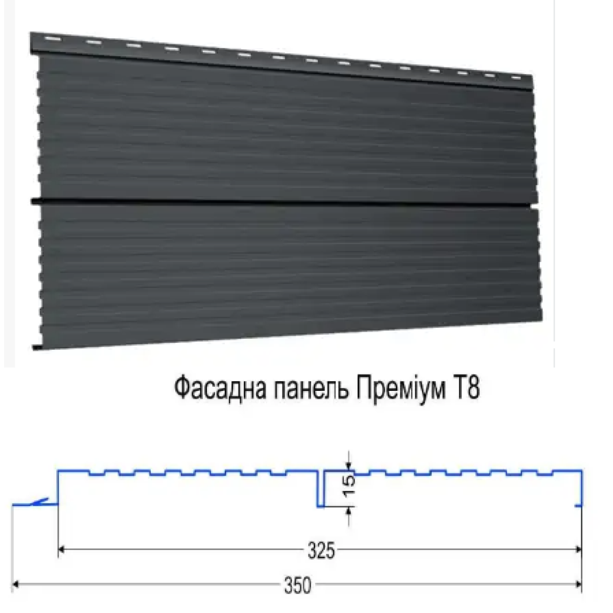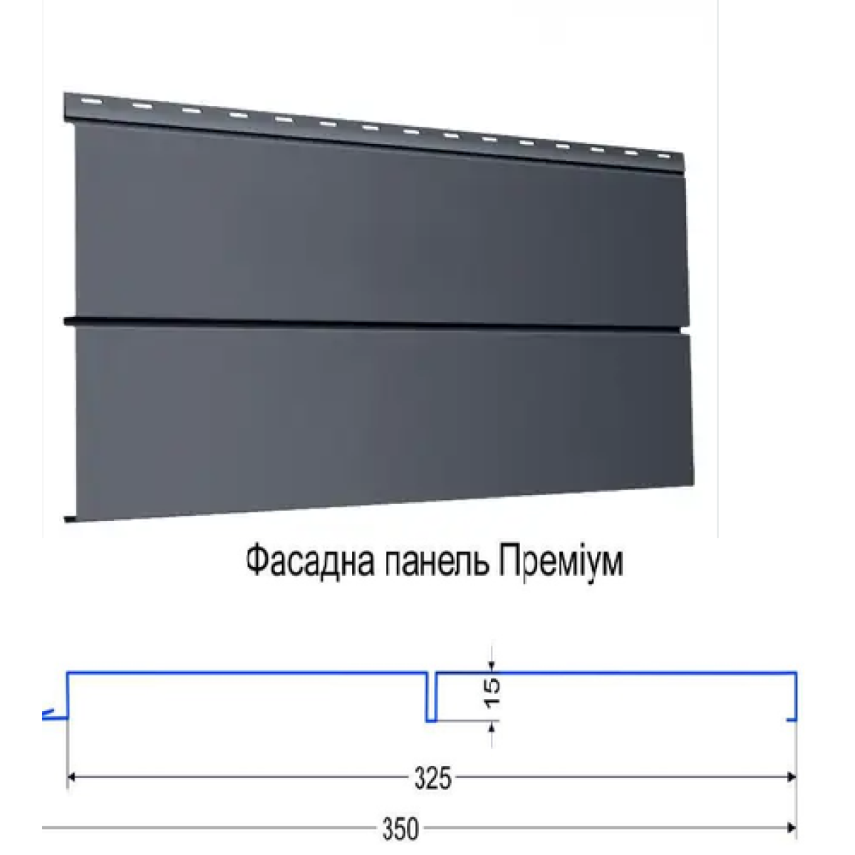 Метолосайдинг Фасадна Панель Преміум - новий вдосконаленй металосайдинг. Має лаконічний дизайн плоскої дошки з прямими кутами згину, а також герметичний замок, який приховує саморізи та не накопичує конденсат.