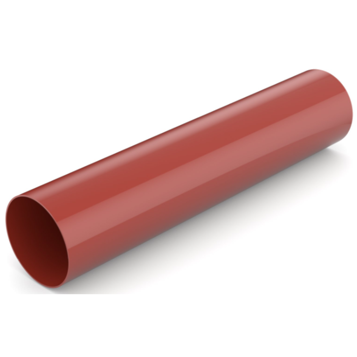 Труба водостічна, довжина 3 метри, діаметр 90 мм колір червоний (RAL 3011). Необхідна для централізованого відводу води. Для виготовлення використовується виключно високоякісний ПВХ, який стійкий до прямих сонячних променів і негативних факторів зовнішнього середовища. Він не вигоряє на сонці і не деформується від температурних перепадів.