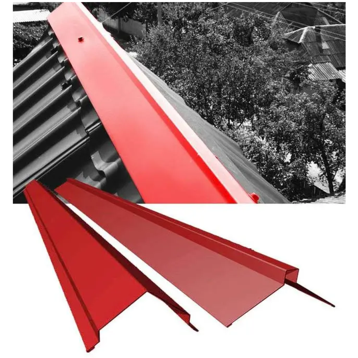 Щоб в простір під покрівлею не потрапляли атмосферні опади, треба змонтувати коньок. При монтажі не домагайтеся повної герметизації стиків, щоб залишити простір для вентиляції. Кріпити коньок треба тими ж самонарізами, що і металочерепицю, з кроком 30-40 сантиметрів. Коньковий елемент встановлюється на місце стиків скатів, під його край укладається ущільнювач, вентиляційний отвір звільняється.