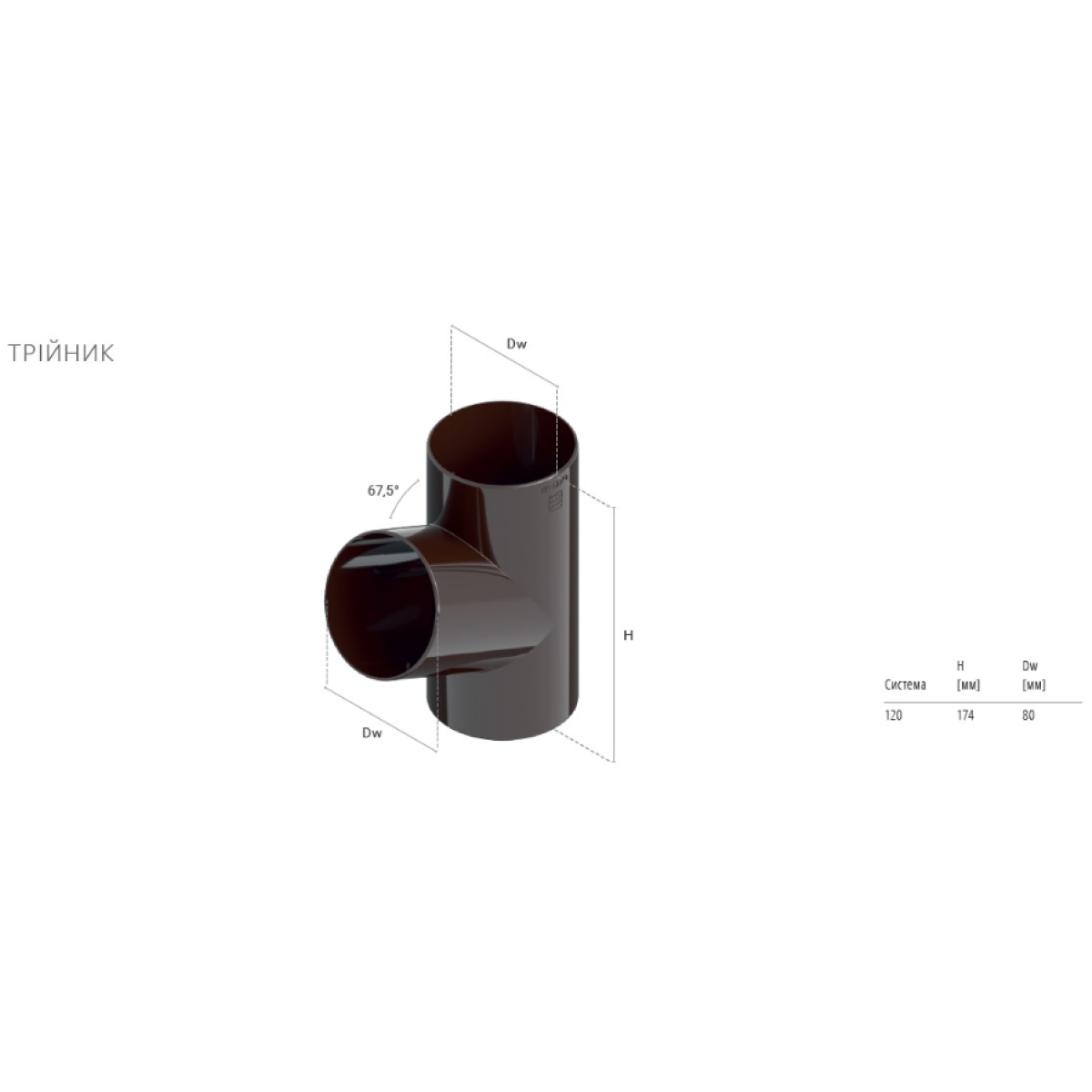 Трійник труби водостічної 80мм INES Коричневий (RAL 8017)