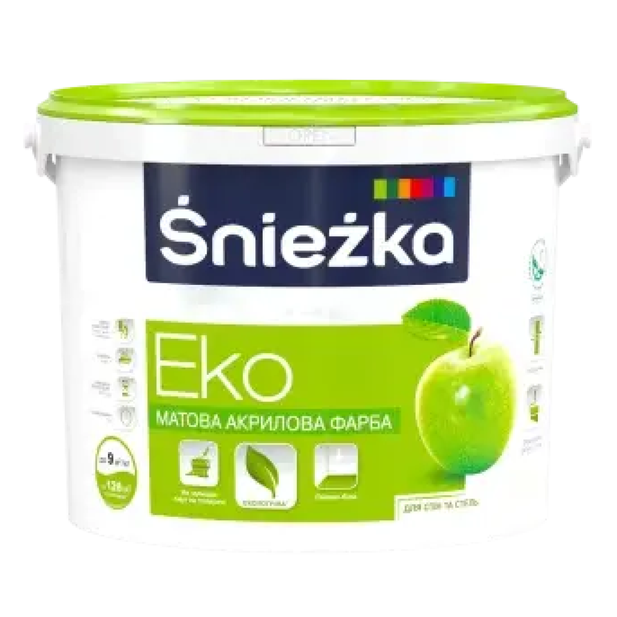 Śnieżka Eko – матова акрилова фарба для стін і стель з ідеальною покривною здатністю. Утворює сніжно білі покриття, які повною мірою дозволять стінам “дихати“. Śnieżka Eko - екологічна фарба, екологічні переваги продукції підтверджено згідно з вимогами ДСТУ ISO 14024 .