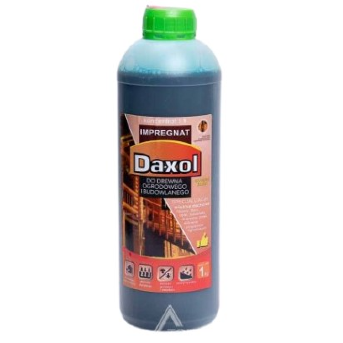 Концентрований засіб поверхневого дії. Концентрат Daxol надійно захищає деревину від появи будинкових, пліснявих і синяви грибків, різного роду термітів, комах і жуків - технічних шкідників. Матеріал без запаху, темно-зеленого кольору, помірно стійкий до змивання. Змінює відтінок деревини на зелений трав“яний, що дозволяє виявити необроблені ділянки. Контрольний барвник може зникати під дією атмосферних опадів. Не викликає хімічної деструкції целюлози в поверхневому шарі, не утворює полімерної плівки та сольового шару. Належить до засобів з низькою корозійною агресивністю по відношенню до чорних металів. Оброблена деревина придатна для лакування, фарбування і склеювання.