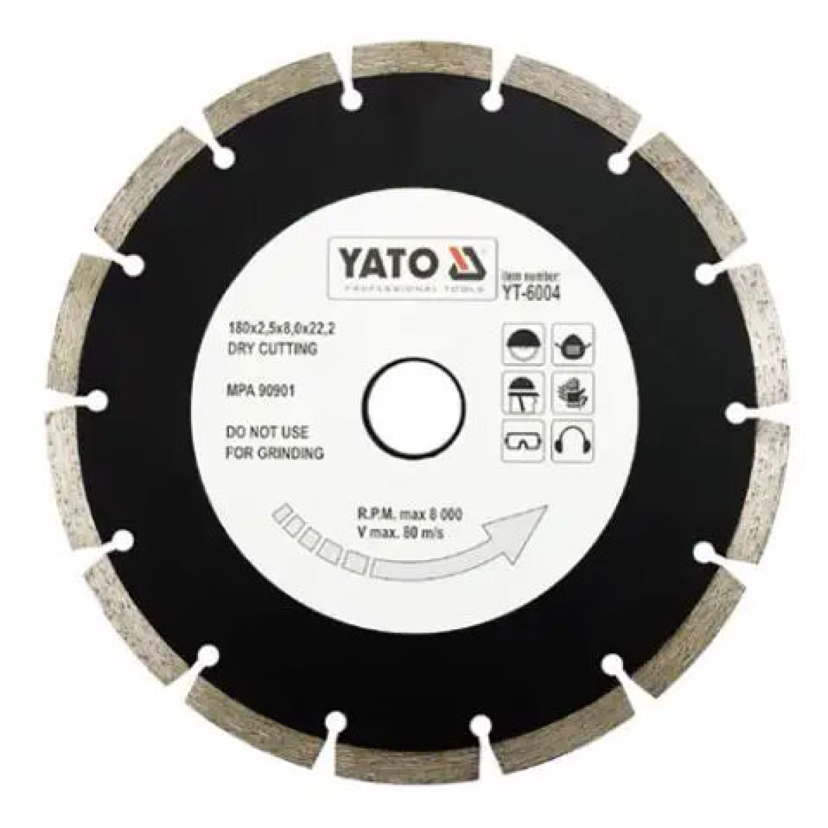 Диск алмазний сегментний 230 мм YATO YT-6005 призначений для точного і чистого різання таких матеріалів як бетон, камінь, цегла, асфальт, тощо . Диск може використовуватися для сухого або мокрого типу різання.