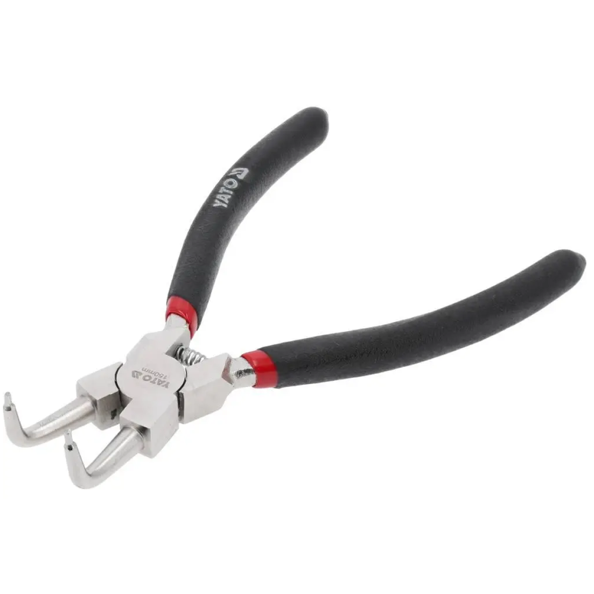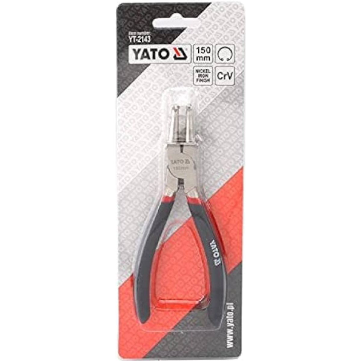 Знімач стопорних кілець YATO YT-2143 - професійний інструмент, призначений для демонтажу та встановлення внутрішніх стопорних кілець. Це захоплення дозволить значно полегшити і прискорити працювати зі стопорними кільцями різного діаметру. Знімач має шарнірно-губцеву форму, що складається з двох рукояток, що обертаються на шарнірі. Конструкція оснащена шарнірним механізмом, для більш плавного та міцного затискача та розвідної пружиною, що дозволяє полегшити розлучення рукоятки. Губки для захоплення мають вигнуту робочу частину спеціальної форми, що дозволяє забезпечити міцну фіксацію демонтажного кільця, не боячись зісковзування або пошкодження деталі в процесі демонтажу або встановлення. Корпус знімача виконаний з міцної інструментальної сталі, високої якості, поверхня якого оброблена вороненням, що додасть антикорозійної стійкості та забезпечить тривалий термін служби інструменту. Для міцності захоплення рукоятки виконані з прогумованого пропілену. Даний тип інструменту знайшов своє застосування в машинобудуванні, автомайстернях та СТО.