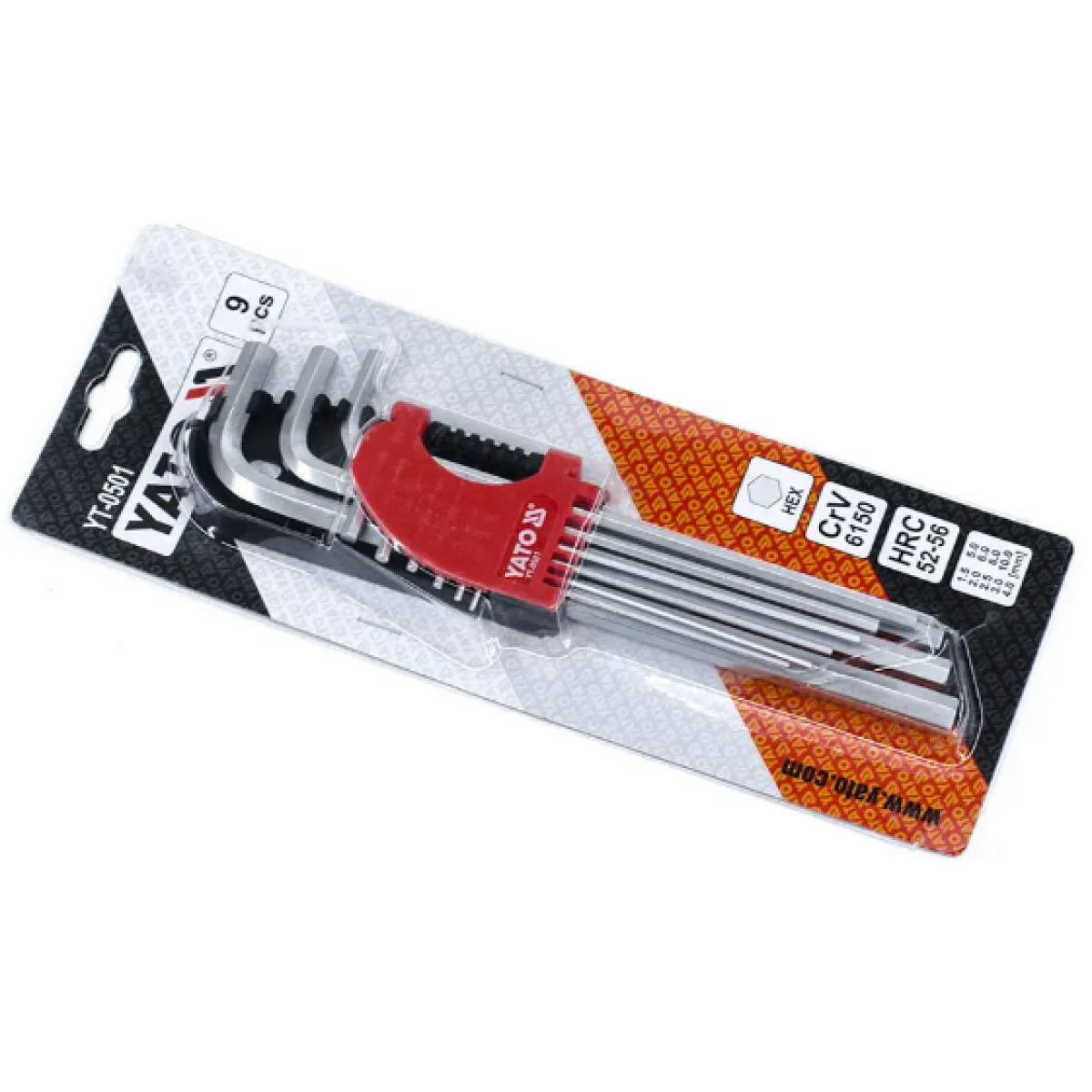 Ключі 6-гранні Г-подібні подовжені YATO: Cr-V, M 1,5-10 мм, 9 шт.