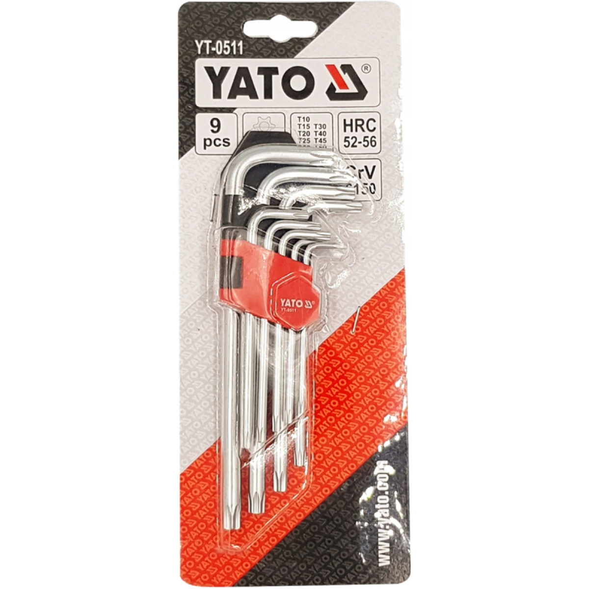 Ключі “TORX“ Г-подібні YATO: Cr-V, T10-T50 короткі з отвором, 9 шт.