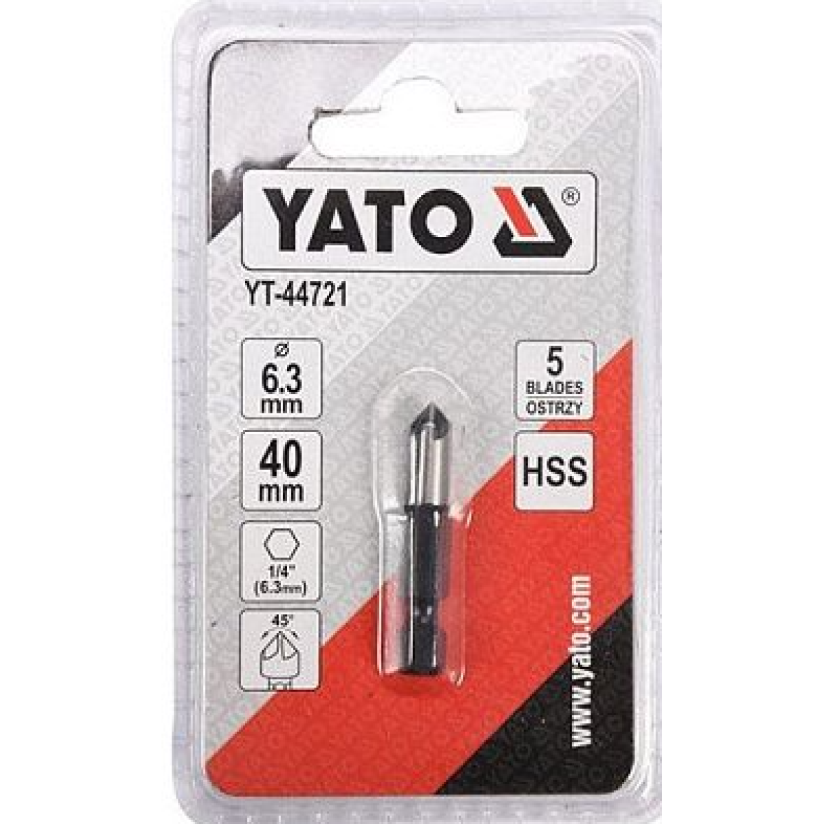 Зенкер конічний по металу YATO: HSS, d=6.3 мм, L= 40 ммHEX - 1/4“