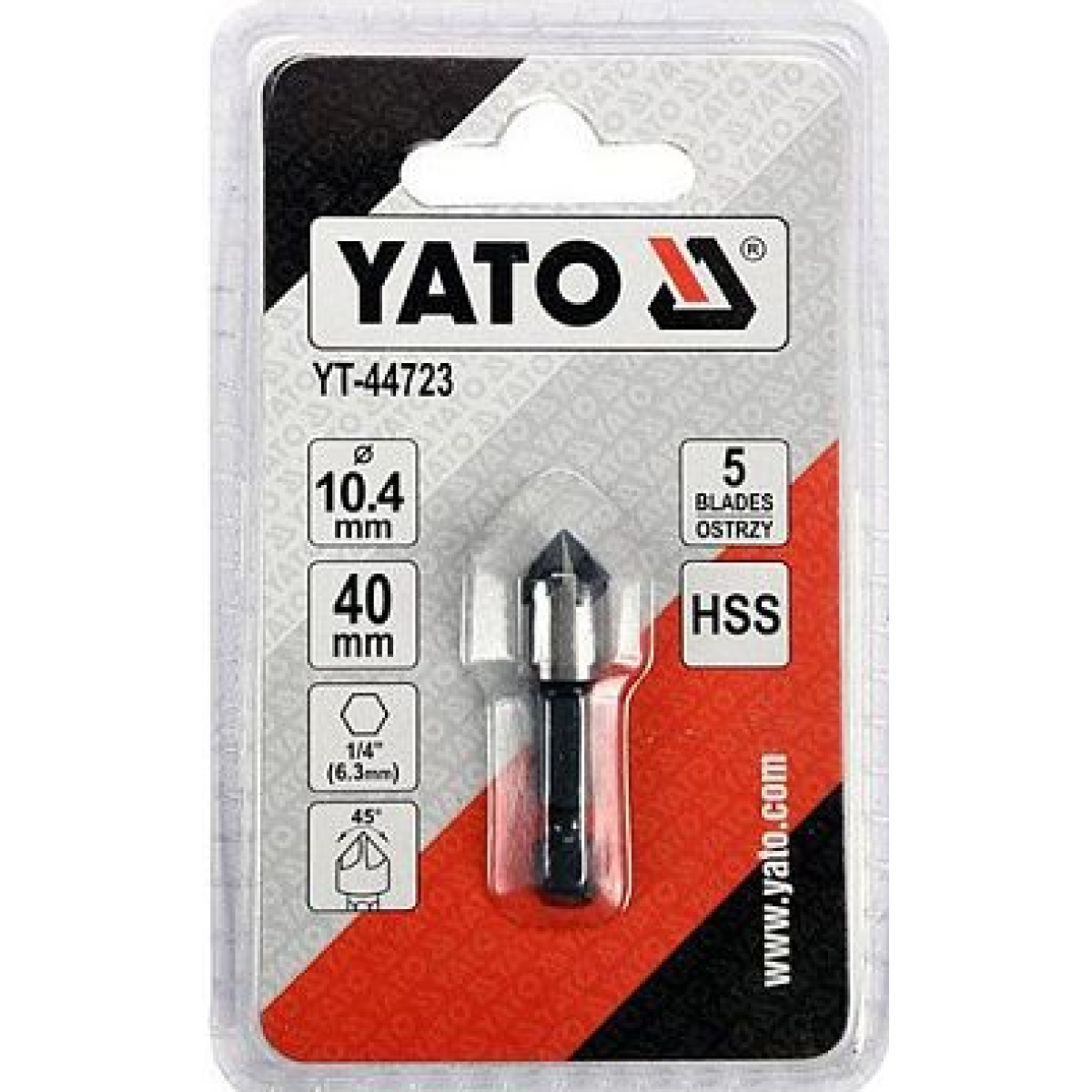 Зенкер конічний по металу YATO: HSS, d=10.4 мм, L= 40 мм HEX - 1/4“
