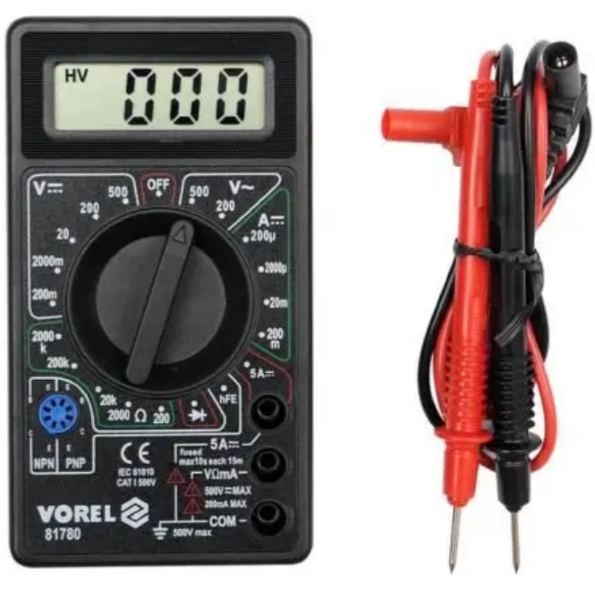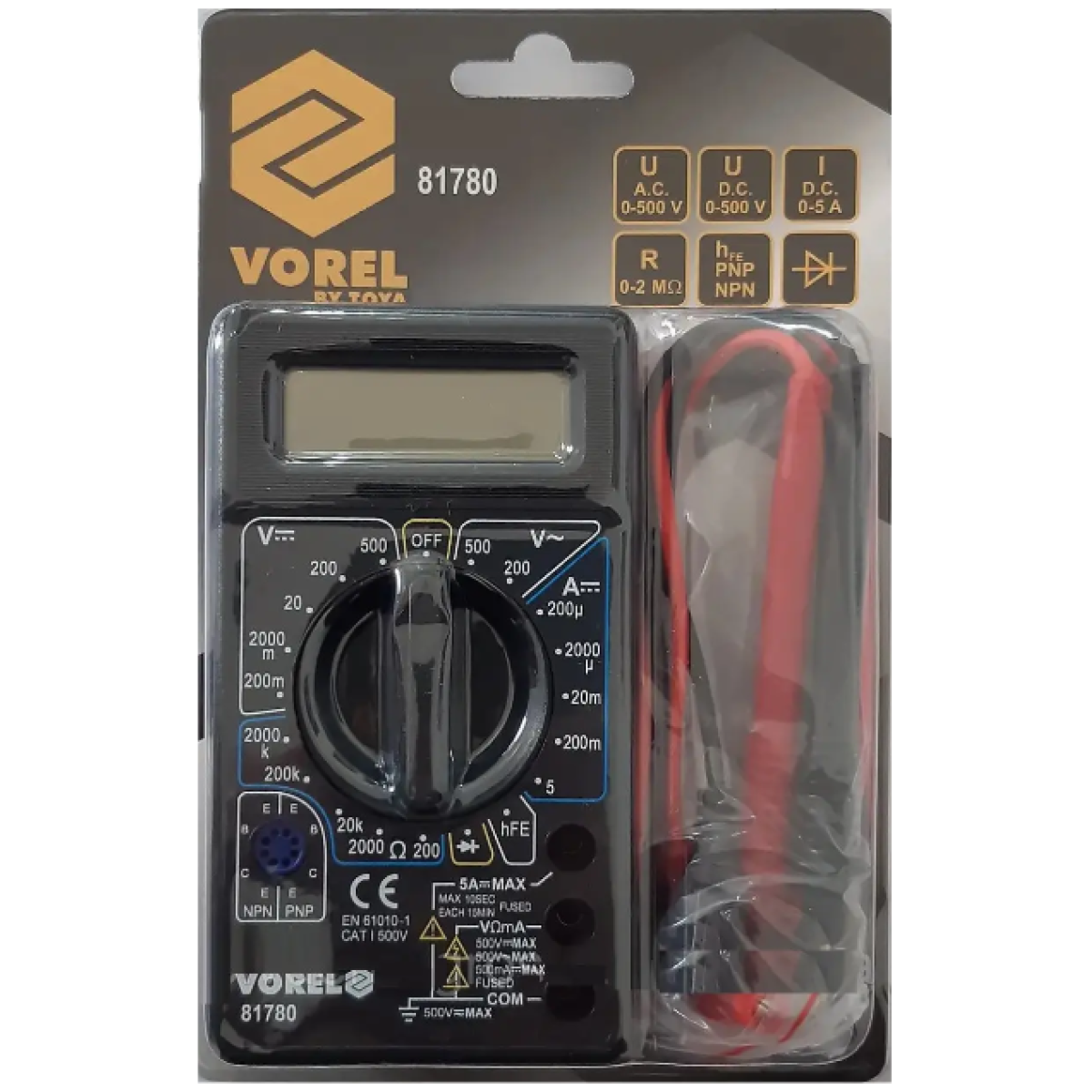 Універсальний Мультиметр 81780 з ручним діапазоном для кожного вимірювання дозволяє проводити основні електричні вимірювання.