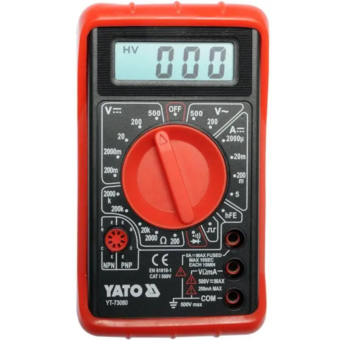 Універсальний лічильник YT-73080 з ручним діапазоном для кожного виміру дозволяє виконувати базові та розширені електричні виміри. Це основна модель у нашому реченні. Додатковим захистом від механічних ушкоджень є т.зв. Кобура – гумовий кожух, натягнутий на кожух пристрою.
