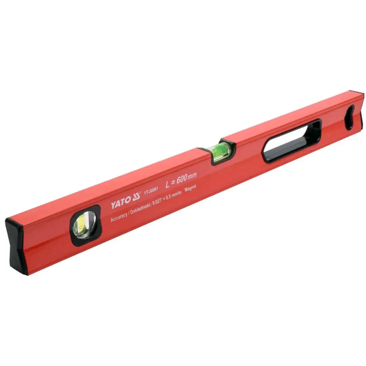 Магнітний рівень із міцного алюмінієвого профілю YATO YT-30061. Алюмінієвий профіль надійно захищений шаром порошкового лаку. Точність рівня складає 0,5 мм/м.