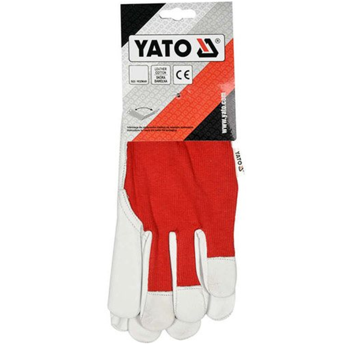 Рукавиці робочі біло-червоні YATO: бавовна + шкіра, розмір 9