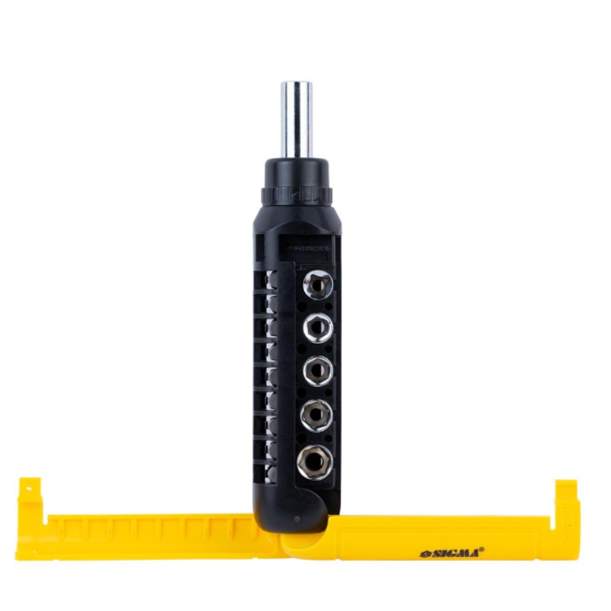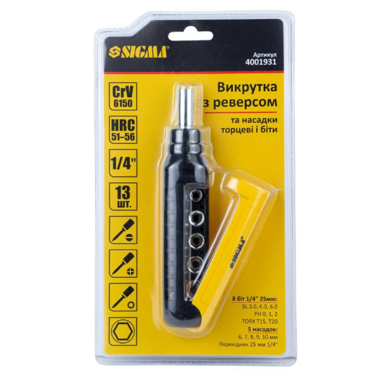 Викрутка з реверсом + насадки торцеві і біти 1/4“ 13шт CrV Sigma