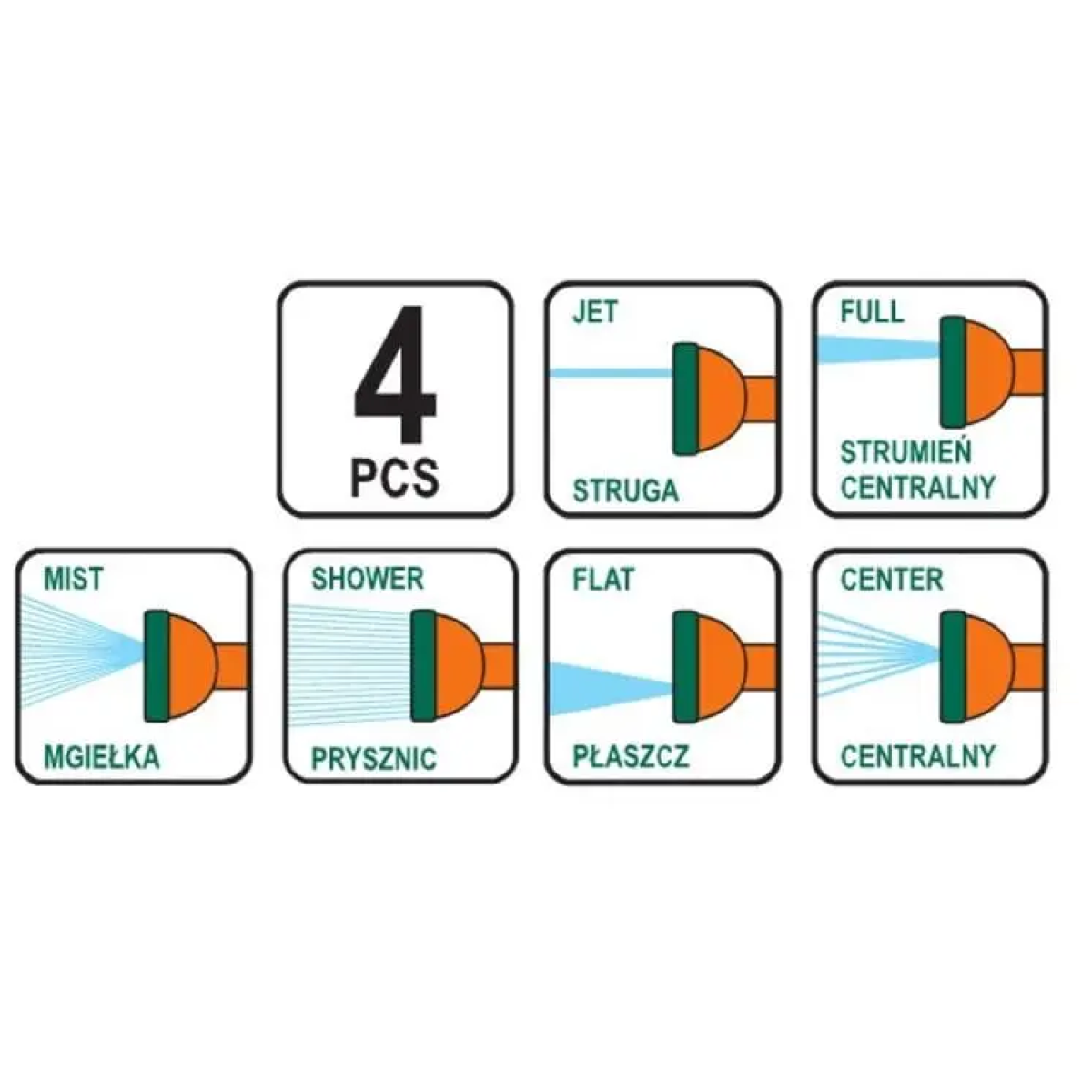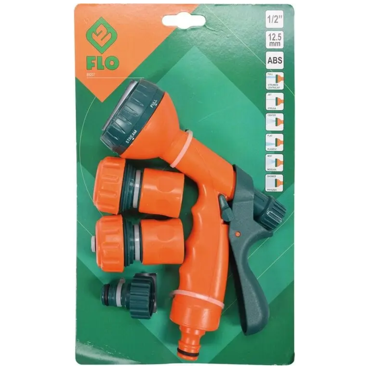 Зрошувач-пістолет 6-режимний Flo з набором з“єднань 1/2“ та 3/4“, ABS-пластик