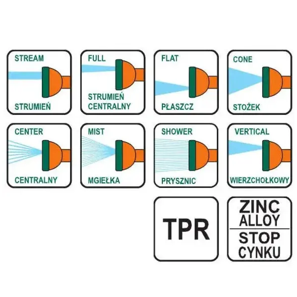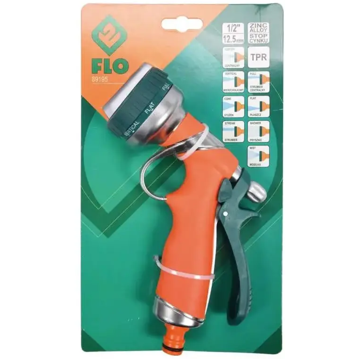 Зрошувач-пістолет 8-режимний Flo до шлангу 1/2“, TPR-пластик + цинк