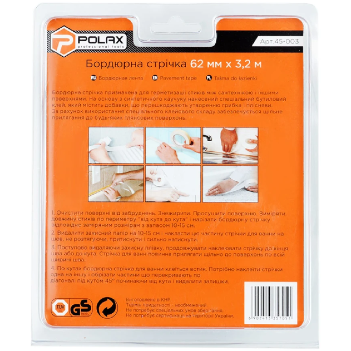 Бордюрна стрічка Polax для ванної, біла 62 мм х 3,2 м