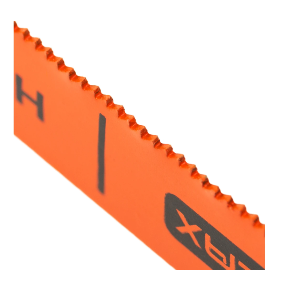Розмір леза 300 х 12 х 0.5 мм: Це ножівкове полотно має оптимальні розміри для ефективного різання металу. Тонка сталева пластина з двома отворами забезпечує міцність і надійність. Твердість матеріалу на рівні HRC 61-64 гарантує довговічність і стійкість полотна. Ви можете бути впевнені, що воно прослужить вам довгий час. Полотно обладнане 24 зубцями на дюйм, що забезпечує точне і чисте виконання різання. Ви зможете отримати професійні результати в кожному проекті.