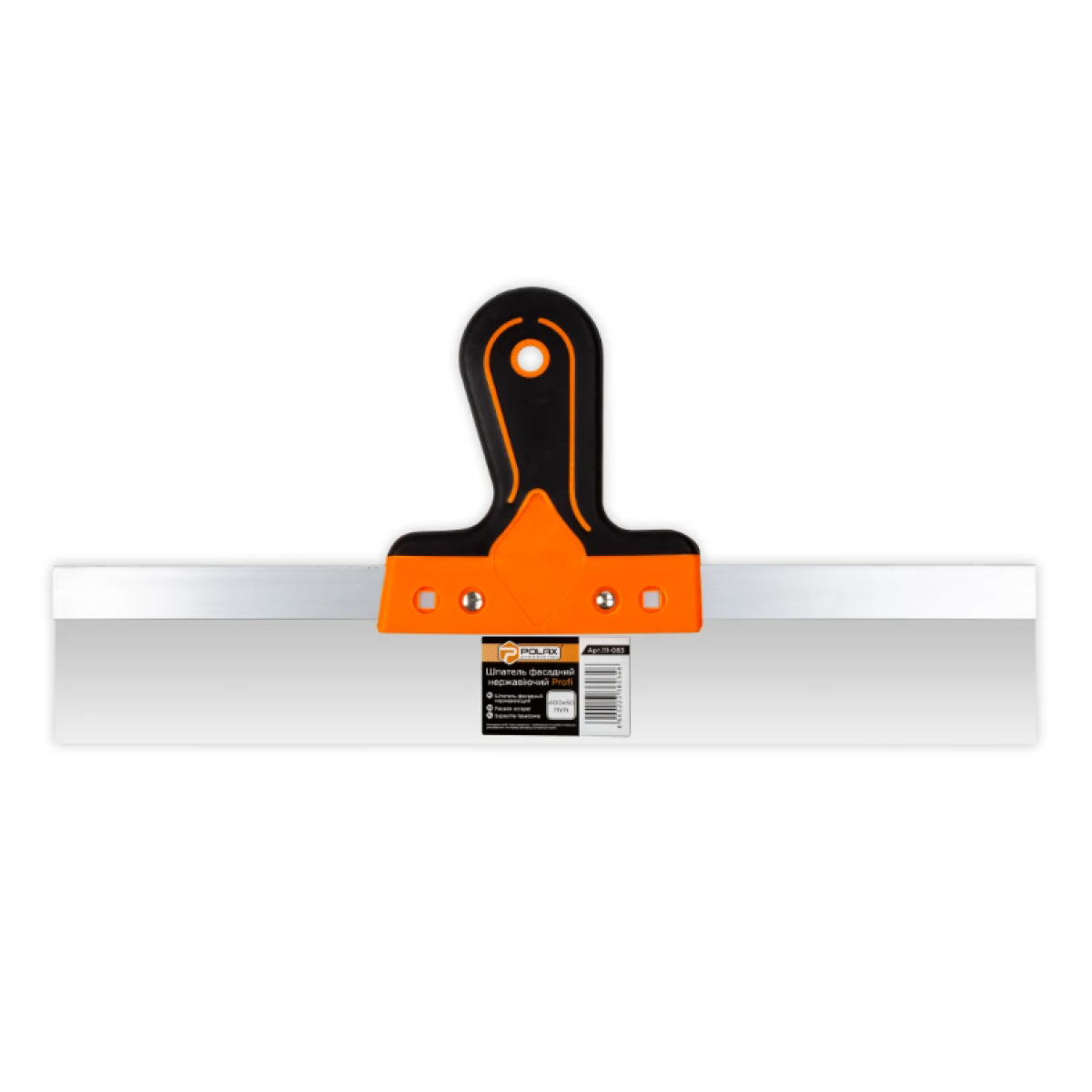 Професійний шпатель Polax з нержавіючим покриттям призначений для виконання різних робіт з оштукатурювання зовнішніх і внутрішніх поверхонь, а також для нанесення шпаклівок, мастик та клейових сумішей. Шпатель оснащений робочим полотном розміром 400 мм завширшки та 50 мм заввишки, що робить його універсальним інструментом для майстрів різного профілю.