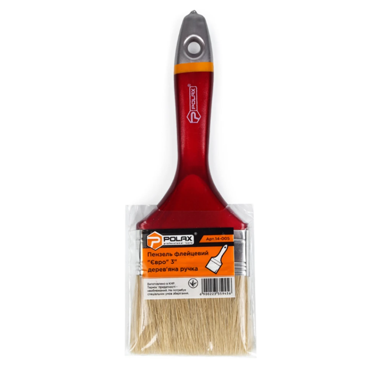 Пензлик флейцевий Polax 3“ тип “Євро“ професійний, змішаний ворс, дерев“яна ручка