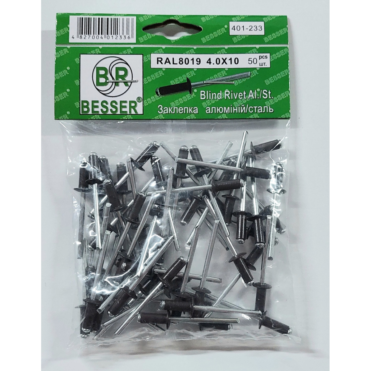 Заклепки алюмінієві витяжні Besser 4 х 10 мм RAL 8019 Темно коричневий