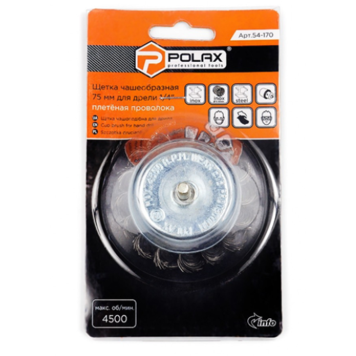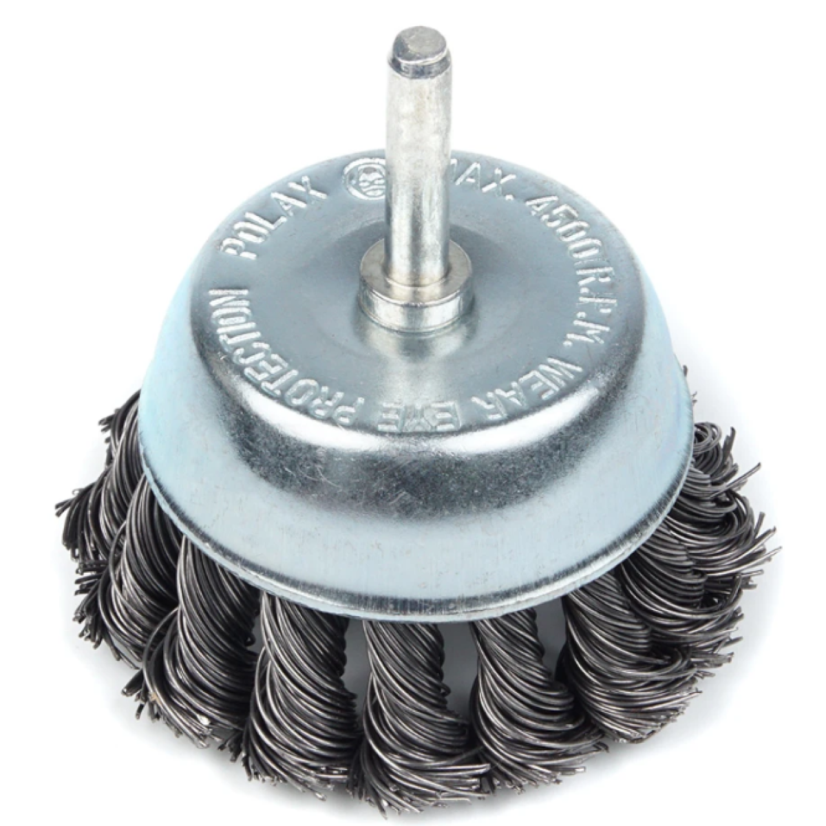 Щітка по металу Polax торцева для дриля сталевий плетений дріт 1/4“ 75 мм