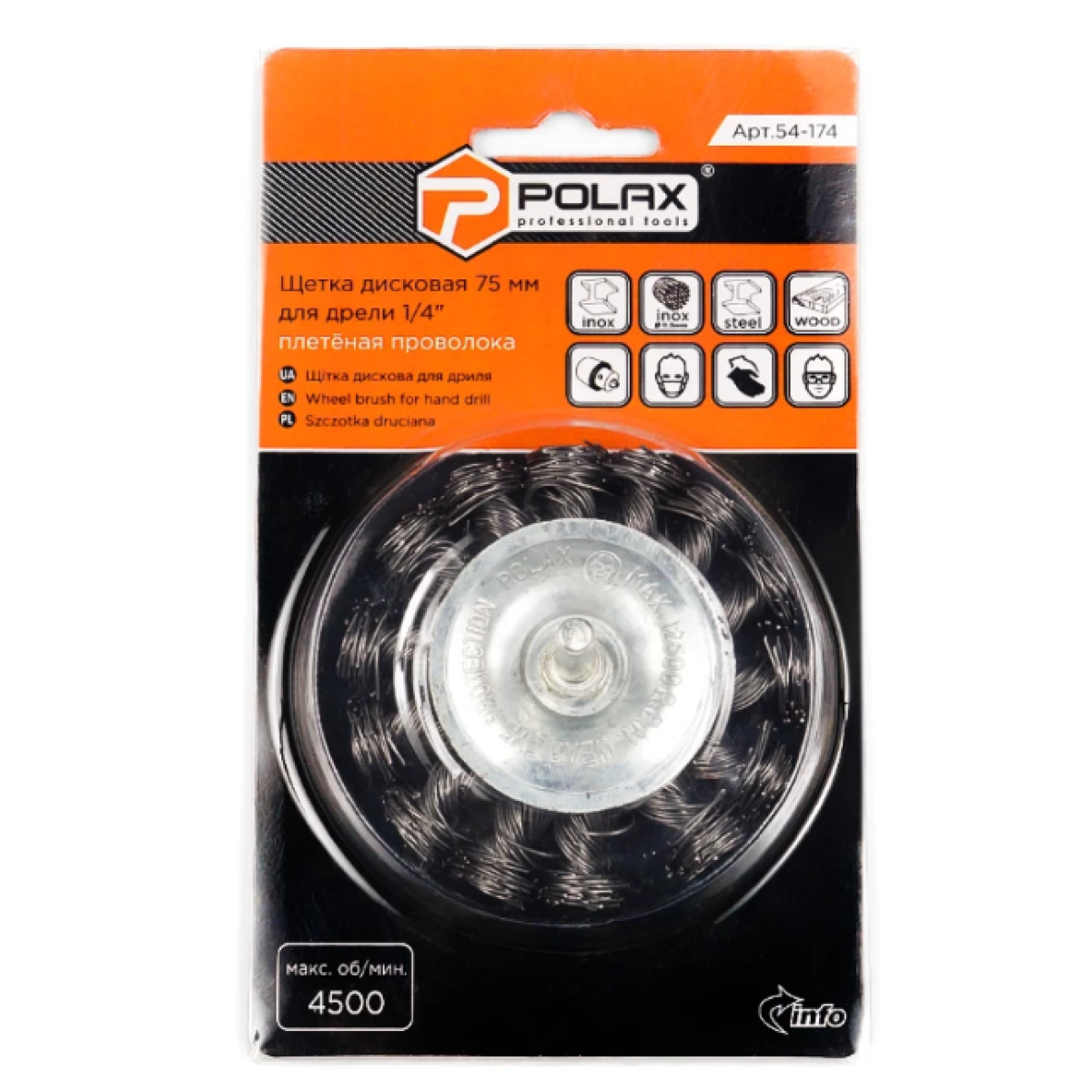 Щітка по металу Polax кільцева для дриля кручений дріт 1/4“ 75 мм