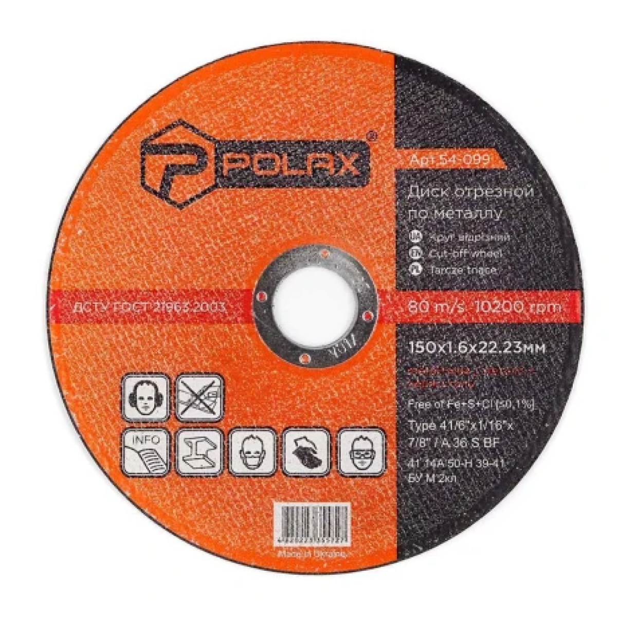 Диск Polax абразивний відрізний по металу 41 14А 150х1,6х22,23