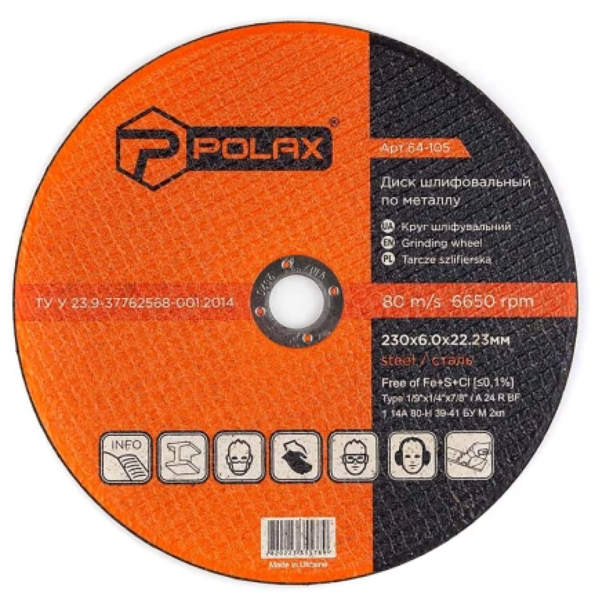 Диск Polax абразивний шліфувальний по металу 1 14А 230х6.0х22,23