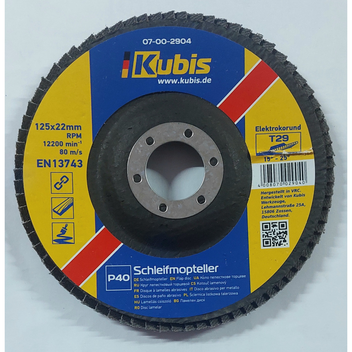 Диск шліфувальний пелюстковий 125*22мм, Р 40 Kubis
