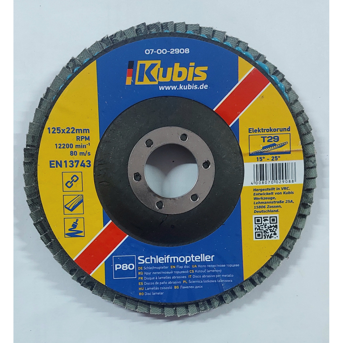 Диск шліфувальний пелюстковий 125*22мм, Р 80 Kubis