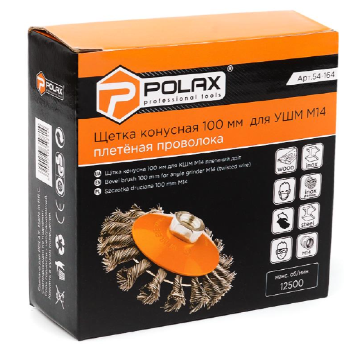 Щітка по металу Polax конусна сталевий дріт М14 100 мм