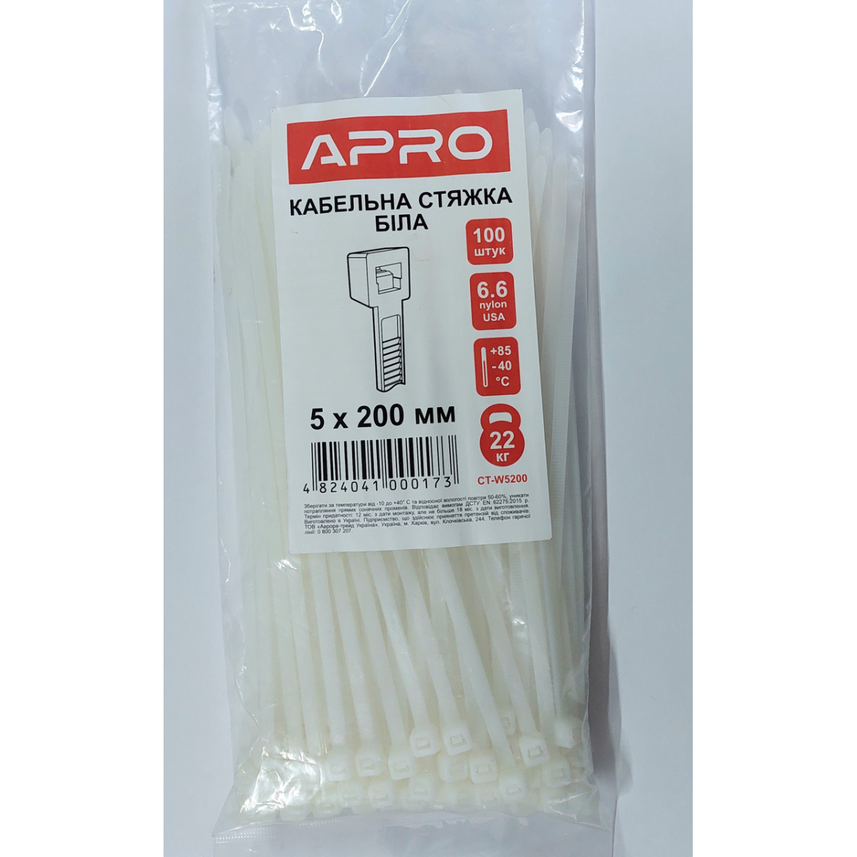 Стяжка нейлон 5х200 біла APRO уп. 100 шт.