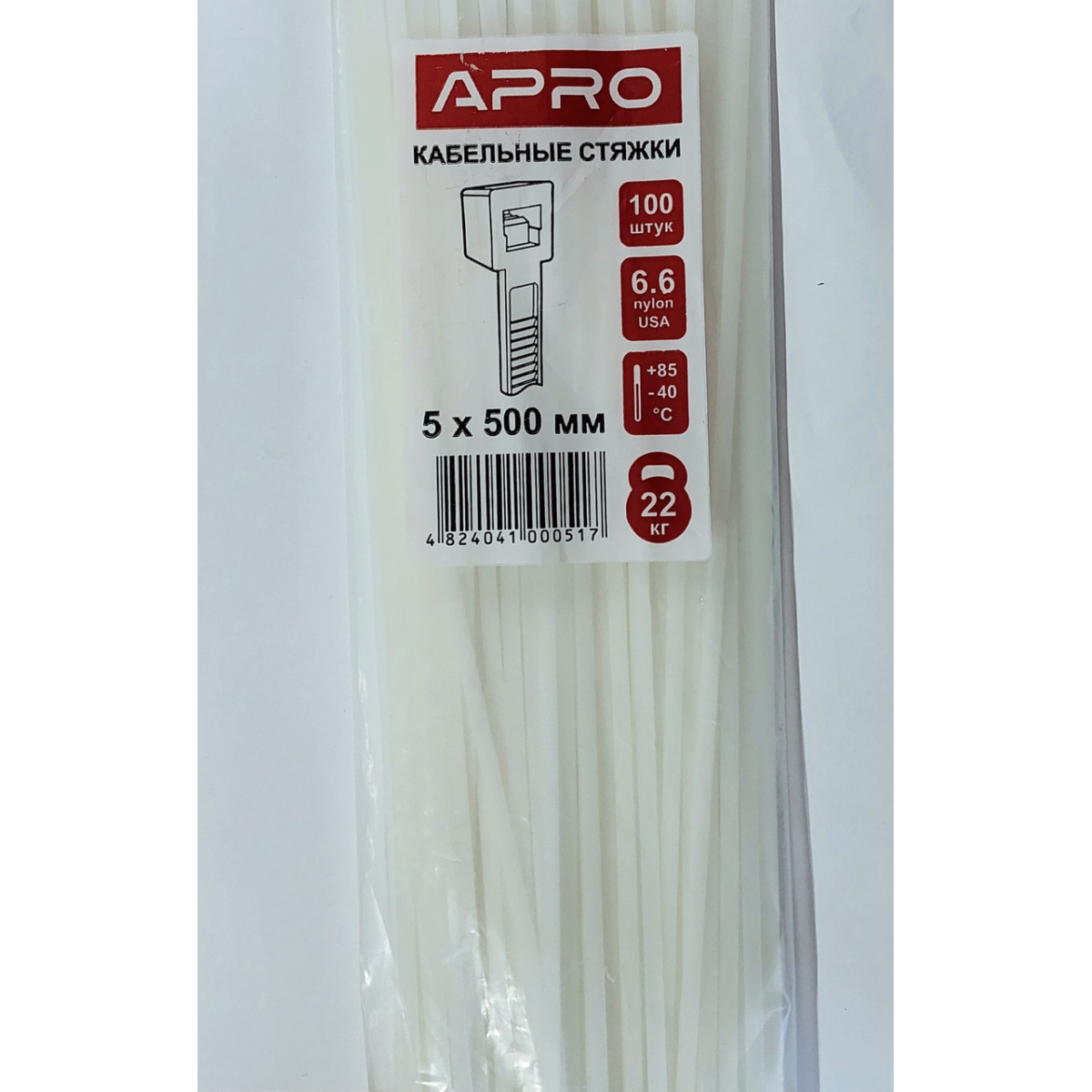 Стяжка нейлон 5х500 біла APRO уп. 100 шт.