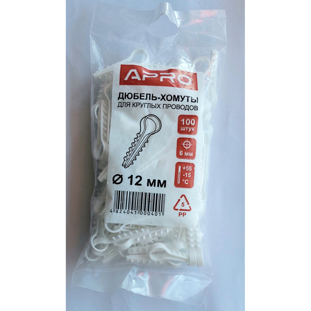 Дюбель-хомут для круглих проводів 12 мм APRO (уп. 100шт)