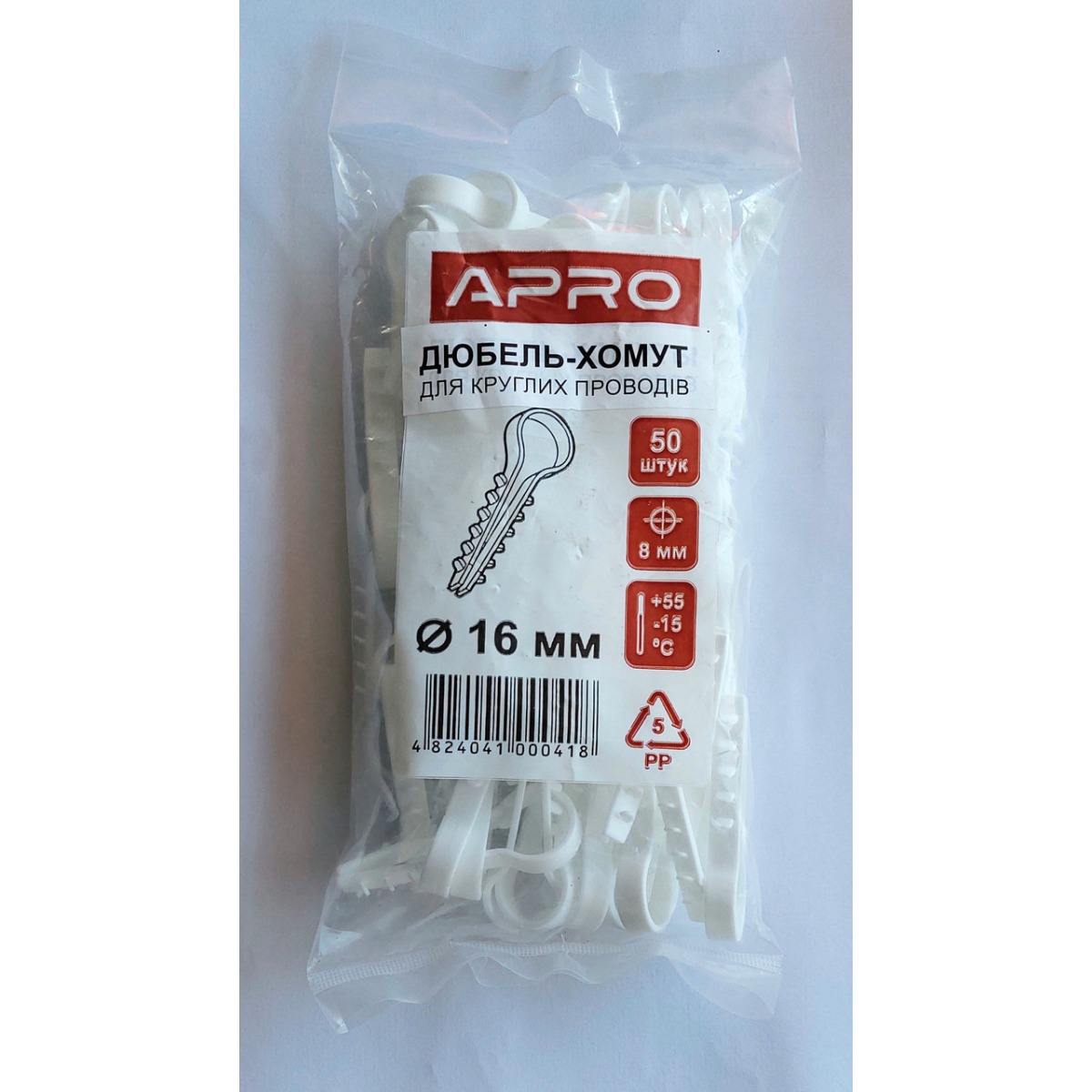 Дюбель-хомут для круглих проводів 16 мм APRO (уп. 50шт)