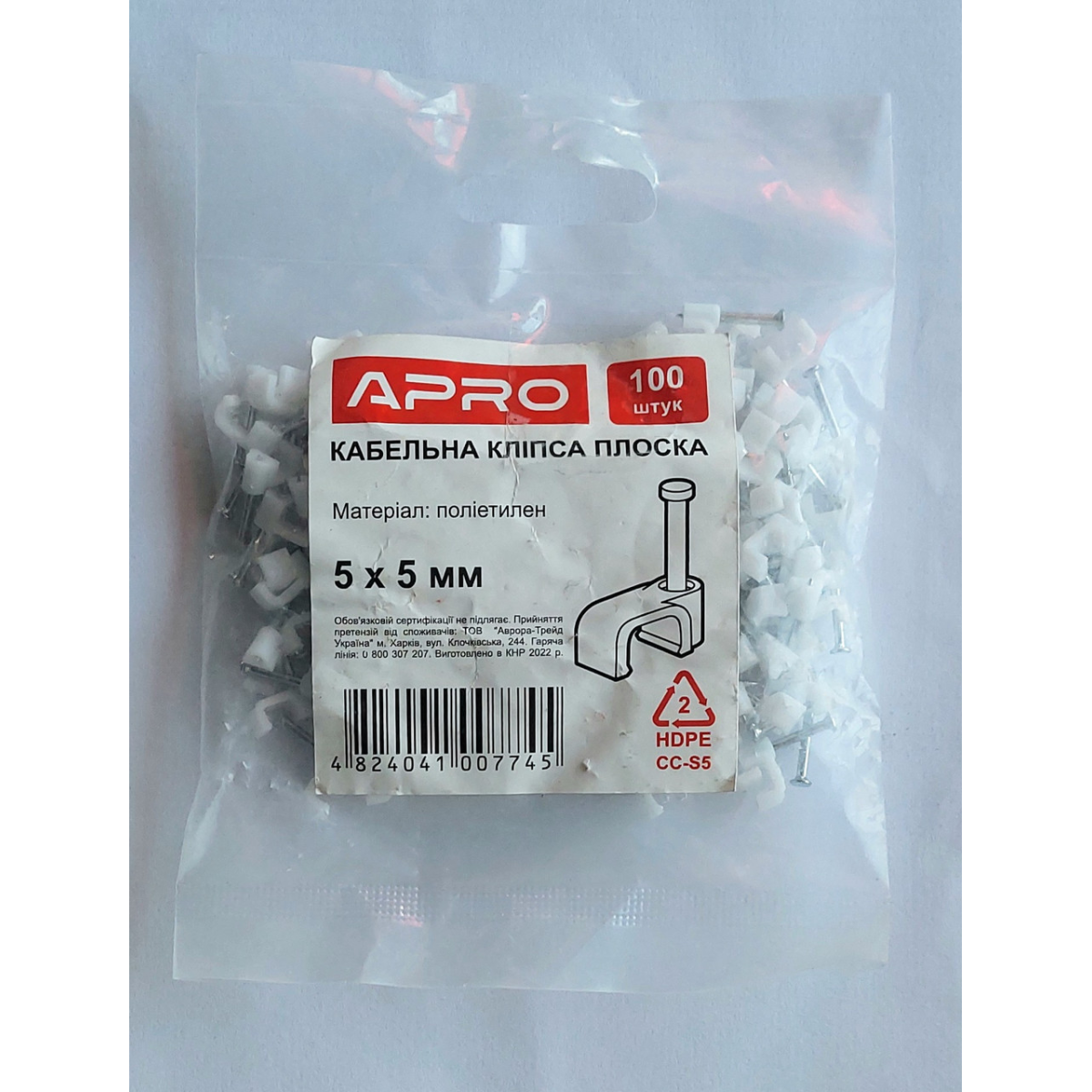 Кабельна кліпса з цвяхом плоска 5х5мм APRO (уп. 100шт)