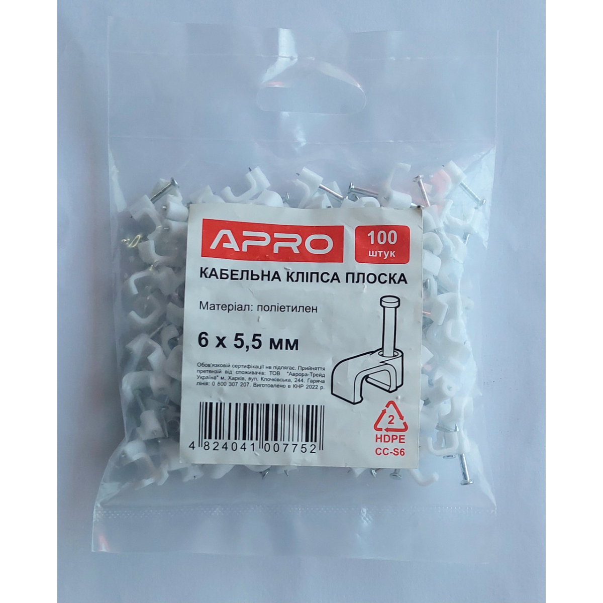 Кабельна кліпса з цвяхом плоска 6х5.5мм APRO (уп. 100шт)