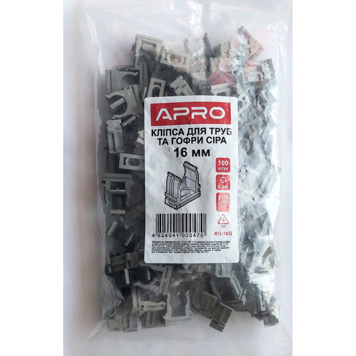 Кліпса для гофри та труб 16мм APRO сіра (уп. 100шт.)