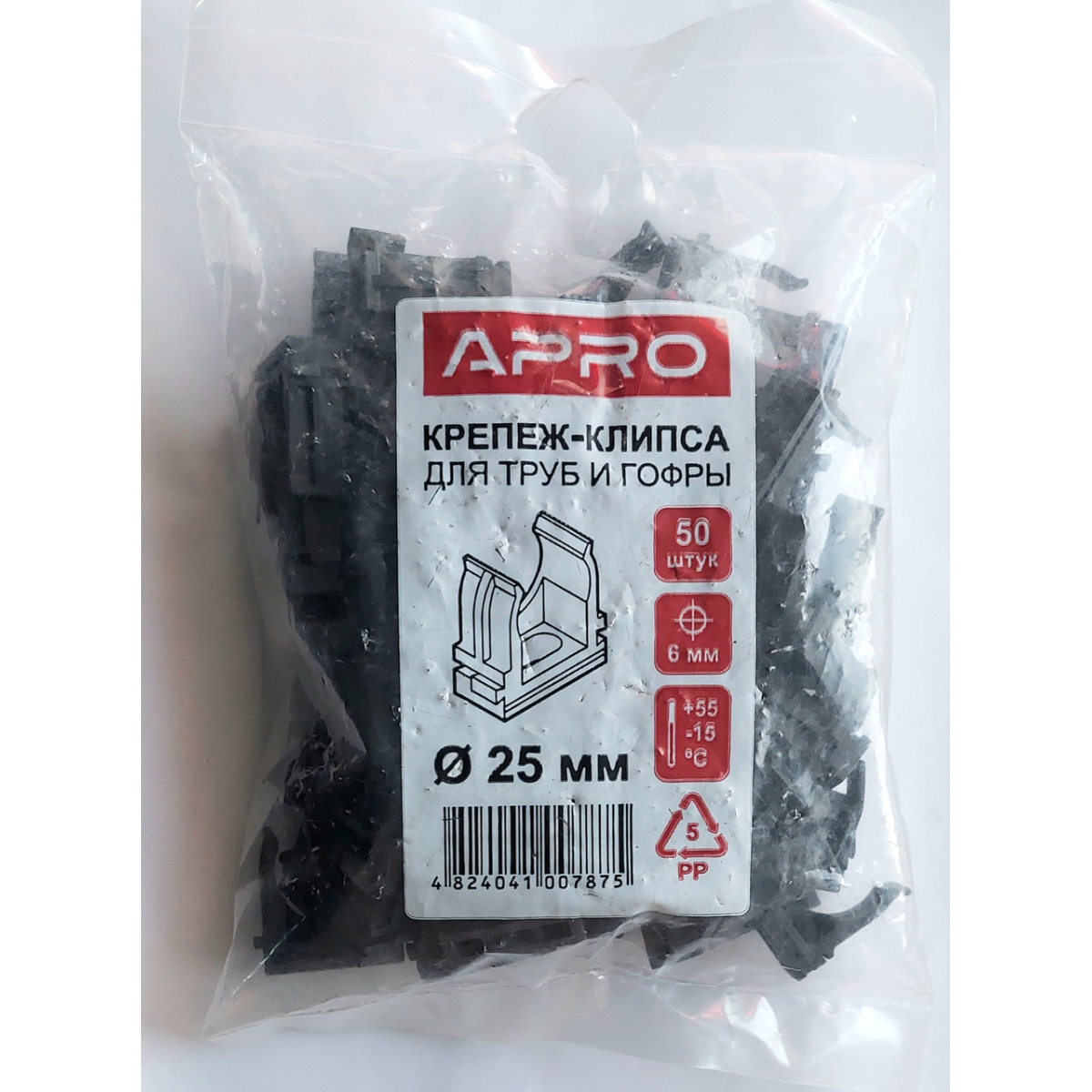 Кліпса для гофри та труб 25мм APRO чорна (уп. 50шт.)