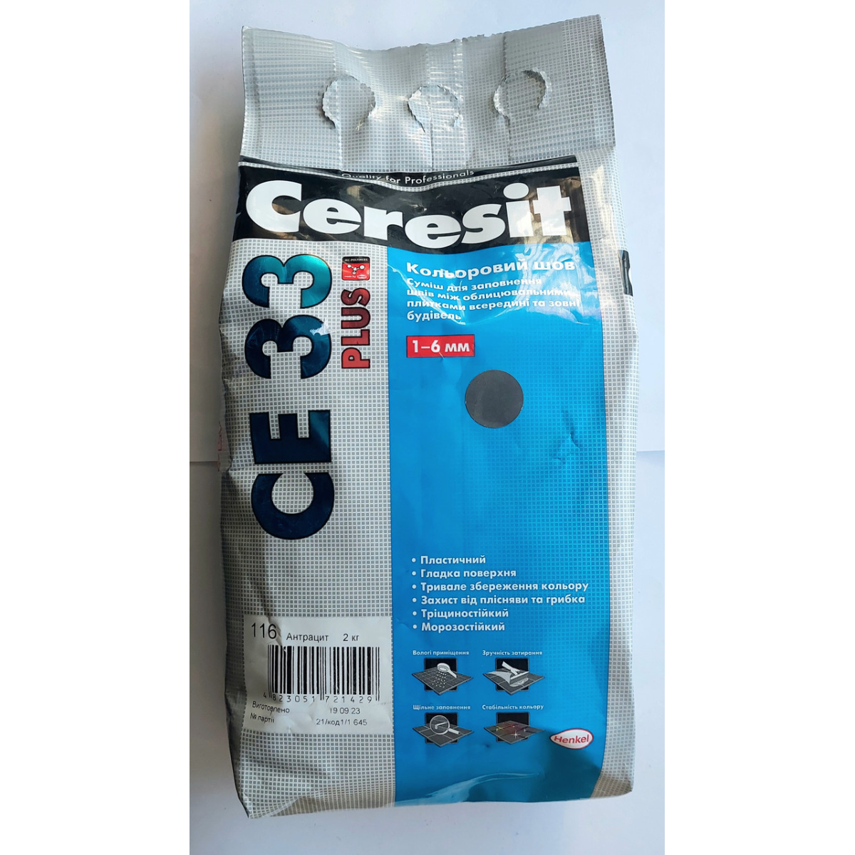 Затирка для швів плитки (Фуга) Ceresit СЕ 33 Plus 116 Антрацит 2кг.
