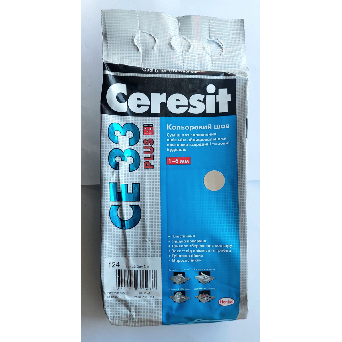 Затирка для швів плитки (Фуга) Ceresit СЕ 33 Plus 124 Темний беж 2кг.