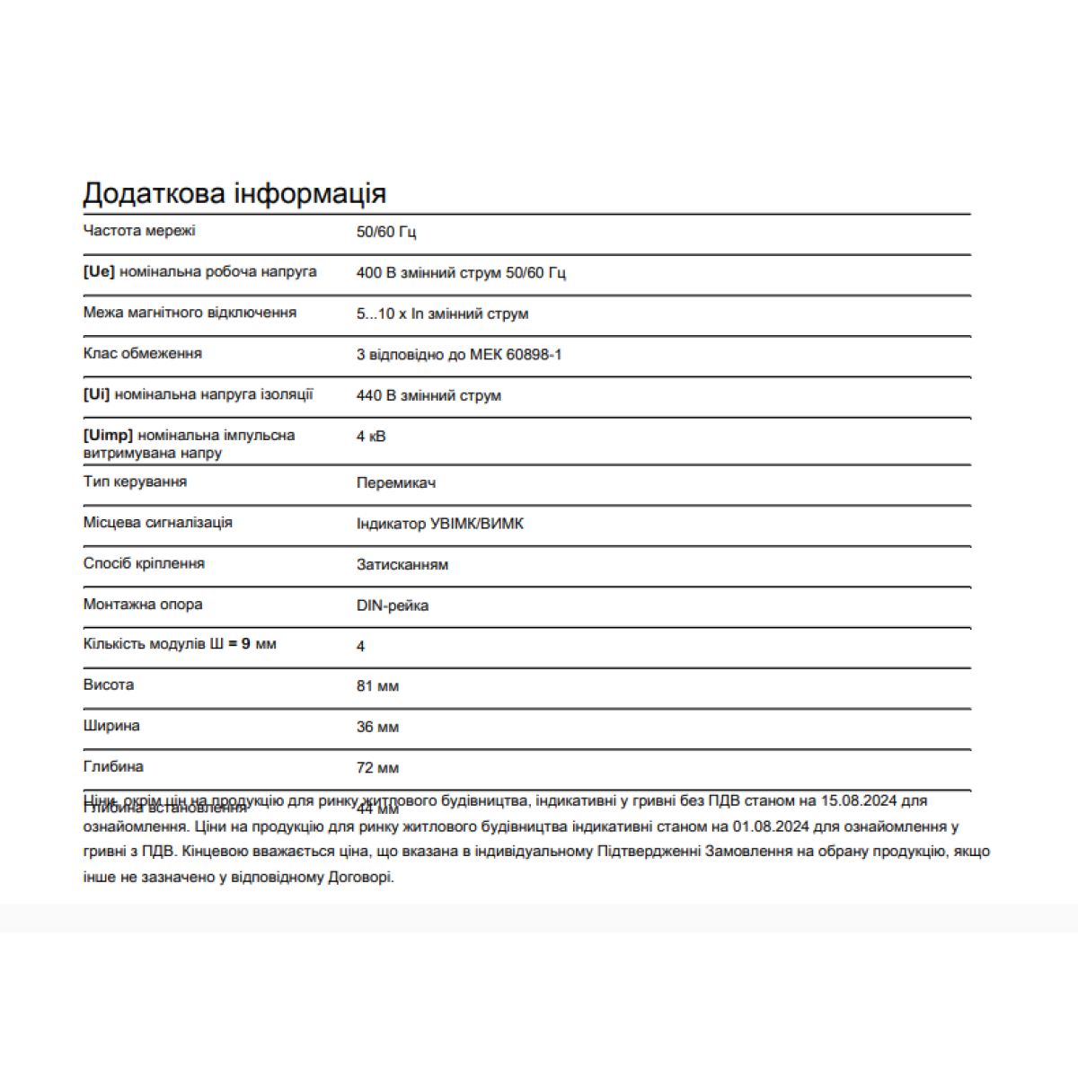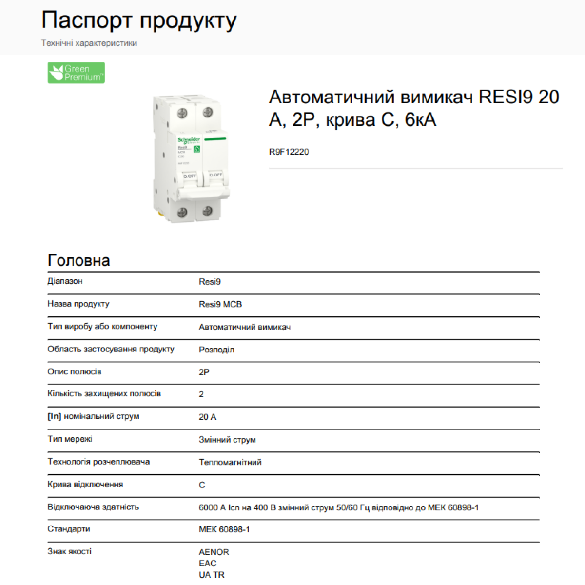 Автоматичний вимикач 6kA 2P 20A тип C, Resi9 Schneider Electric