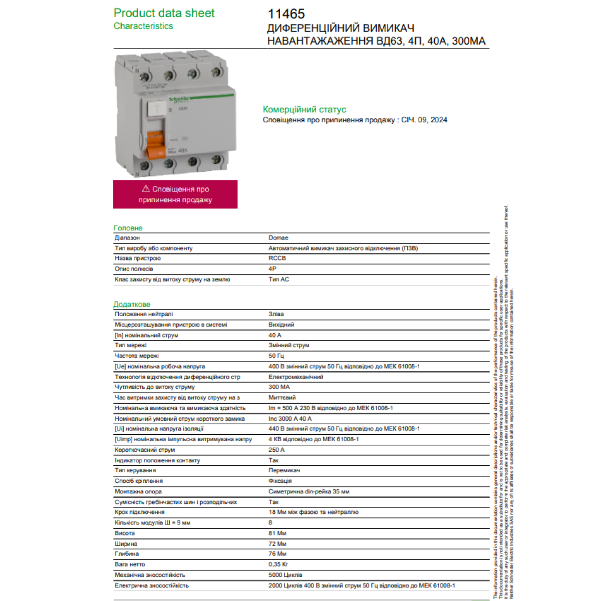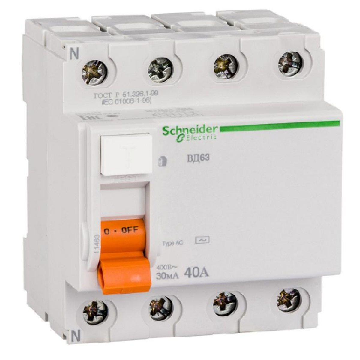 Пристрій захисного відключення 4P 40A 30mA АС, Resi9 Schneider Electric