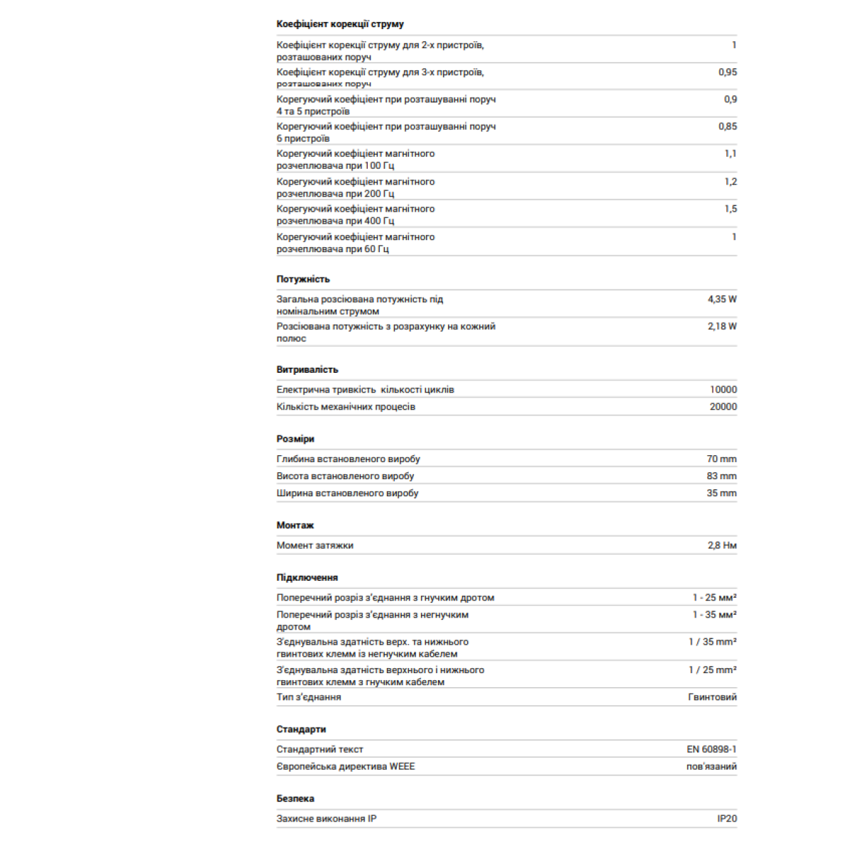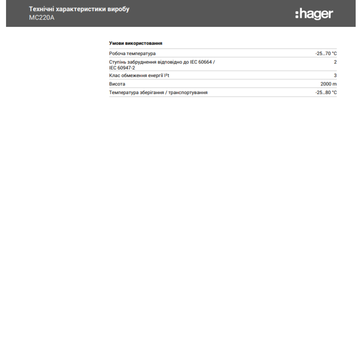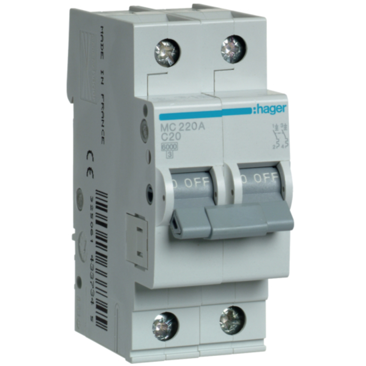 Автоматичний вимикач 6kA 2P 20A тип C, Hager MC220A