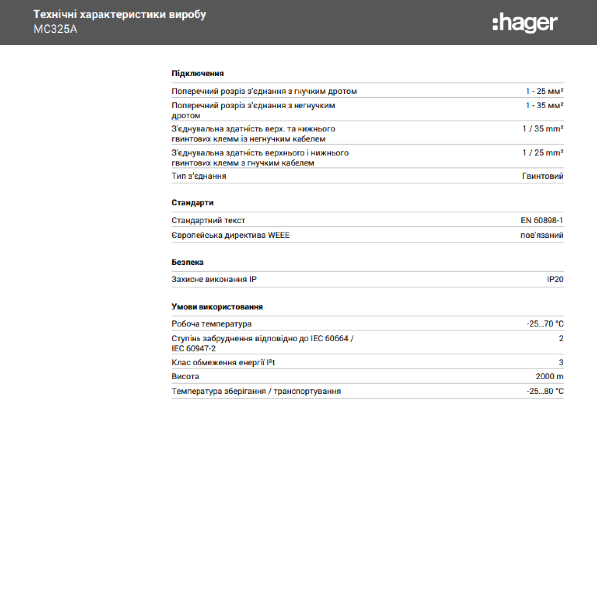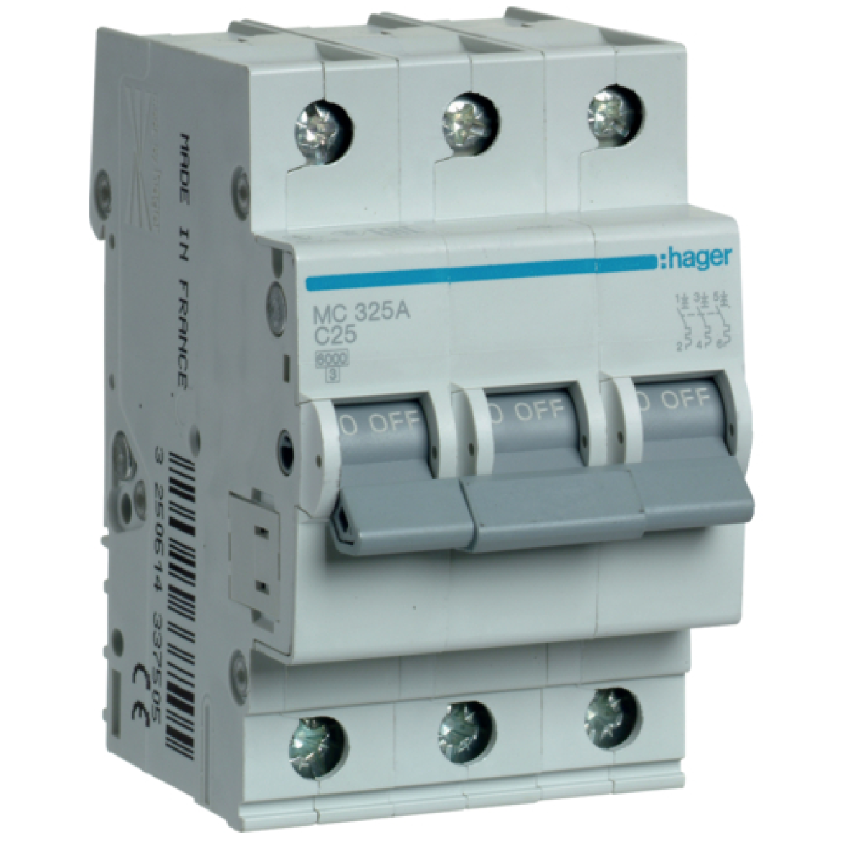 Автоматичний вимикач 6kA 3P 25A тип C, Hager MC325A